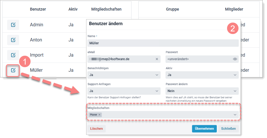 Im Gegensatz zum „Mitarbeiter“ werden in MEP24web alle Personen als „Benutzer“ bezeichnet, die für die Planung Zugriff auf das Hauptprogramm bekommen sollen.